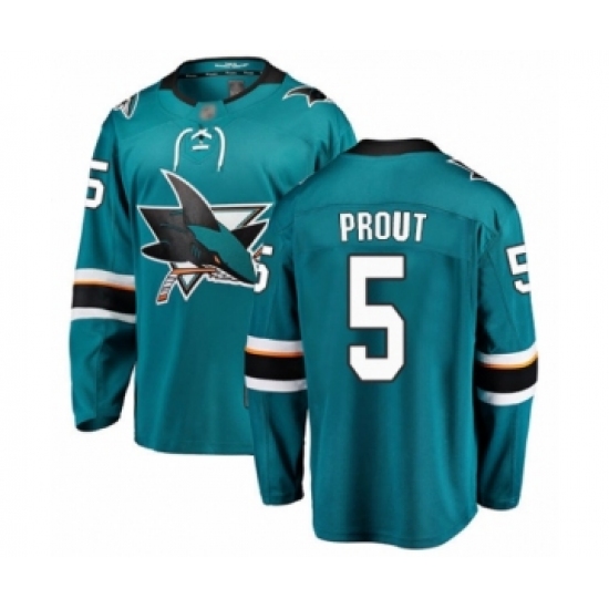 >Youth San Jose Sharks #5 Dalton Prout Fanatics Branded Teal Green Home Breakaway Hockey Jersey