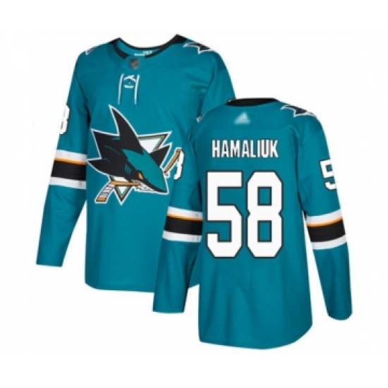>Youth San Jose Sharks #58 Dillon Hamaliuk Authentic Teal Green Home Hockey Jersey