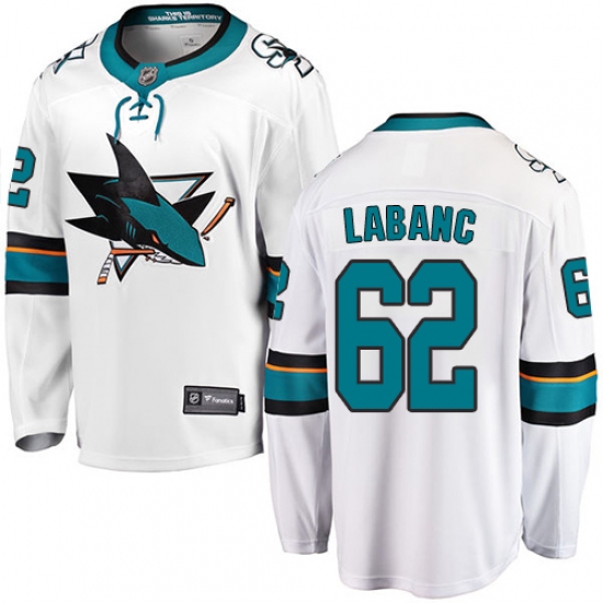 Home>NHL>San Jose Sharks>Kevin Labanc>Youth San Jose Sharks #62 Kevin Labanc Fanatics Branded White Away Breakaway NHL Jersey