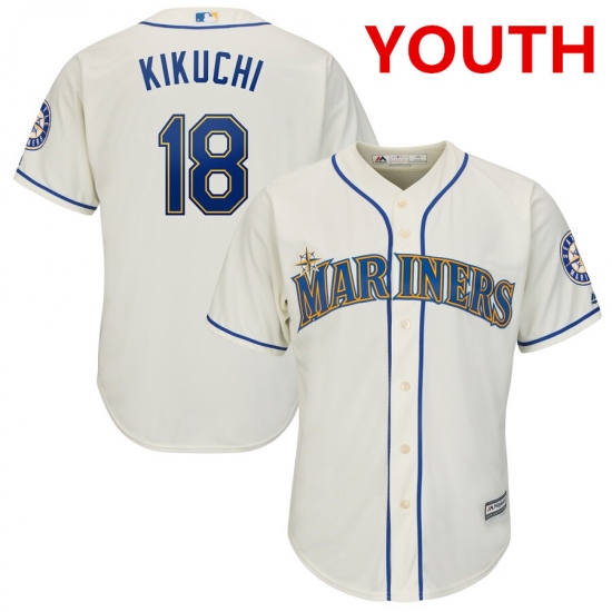 Youth Seattle Mariners #18 Yusei Kikuchi Replica Cream Alternate Cool Base Baseball Jersey