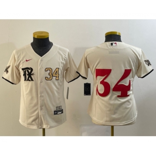 >Youth Texas Rangers #34 Nolan Ryan Number Cream 2023 City Connect Stitched Baseball Jersey