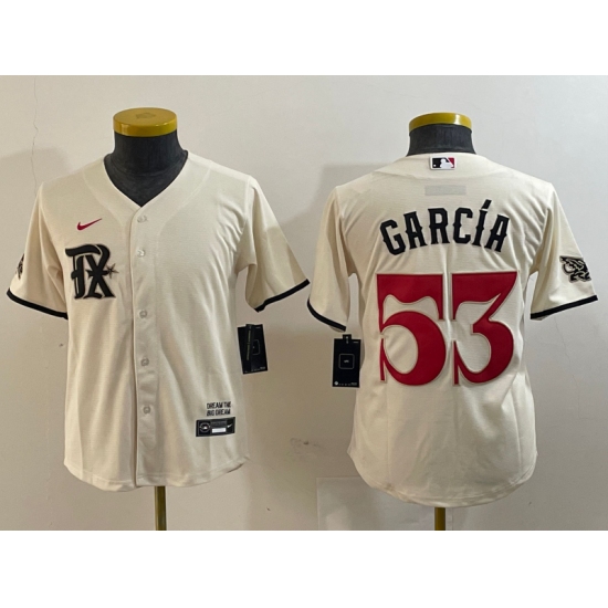 >Youth Texas Rangers #53 Adolis Garcia Cream 2023 City Connect Cool Base Stitched Jersey