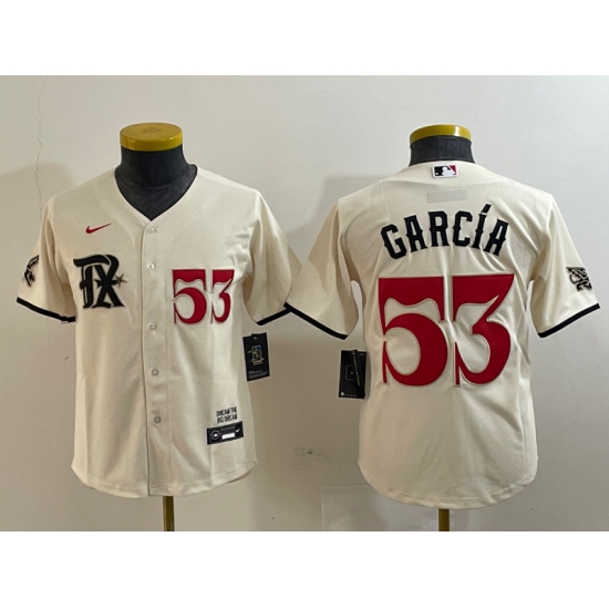 >Youth Texas Rangers #53 Adolis Garcia Number Cream 2023 City Connect Cool Base Stitched Jersey