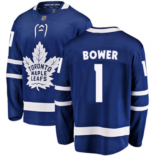 Home>NHL>Toronto Maple Leafs>Johnny Bower>Youth Toronto Maple Leafs #1 Johnny Bower Fanatics Branded Royal Blue Home Breakaway NHL Jersey