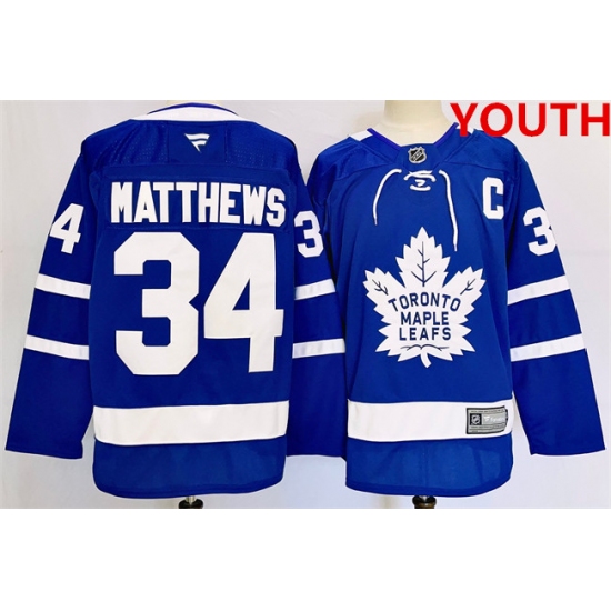 >Youth Toronto Maple Leafs #34 Auston Matthews Blue 2024-25 Stitched Jersey