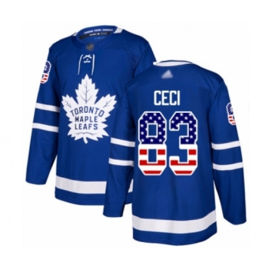 >Youth Toronto Maple Leafs #83 Cody Ceci Authentic Royal Blue USA Flag Fashion Hockey Jersey