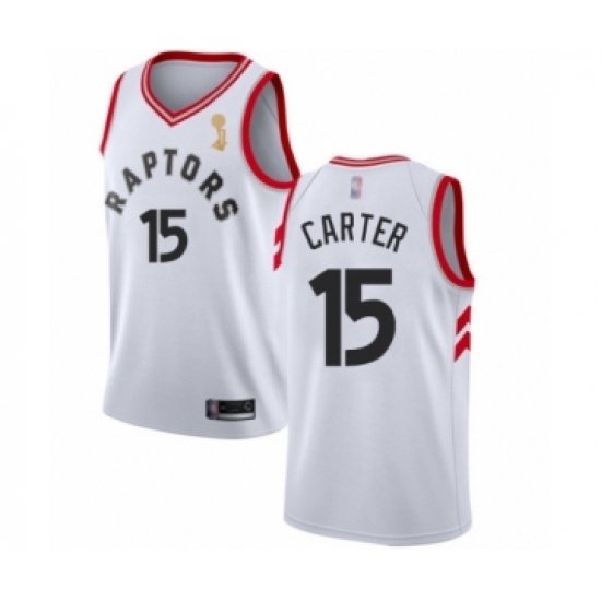Youth Toronto Raptors #15 Vince Carter Swingman White 2019 Basketball Finals Champions Jersey - Association Edition