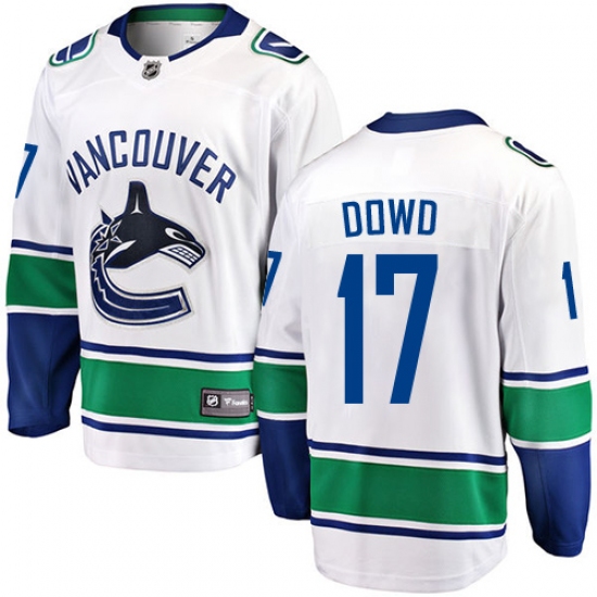>Youth Vancouver Canucks #17 Nic Dowd Fanatics Branded White Away Breakaway NHL Jersey