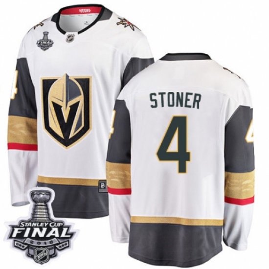 >Youth Vegas Golden Knights #4 Clayton Stoner Authentic White Away Fanatics Branded Breakaway 2018 Stanley Cup Final NHL Jersey