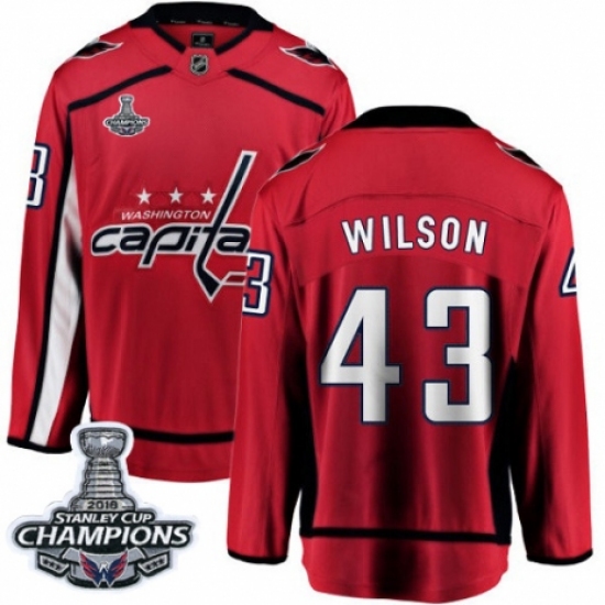 >Youth Washington Capitals #43 Tom Wilson Fanatics Branded Red Home Breakaway 2018 Stanley Cup Final Champions NHL Jersey