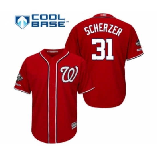 Youth Washington Nationals #31 Max Scherzer Authentic Red Alternate 1 Cool Base 2019 World Series Champions Baseball Jersey