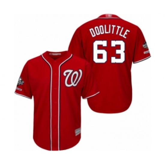 >Youth Washington Nationals #63 Sean Doolittle Authentic Red Alternate 1 Cool Base 2019 World Series Champions Baseball Jersey