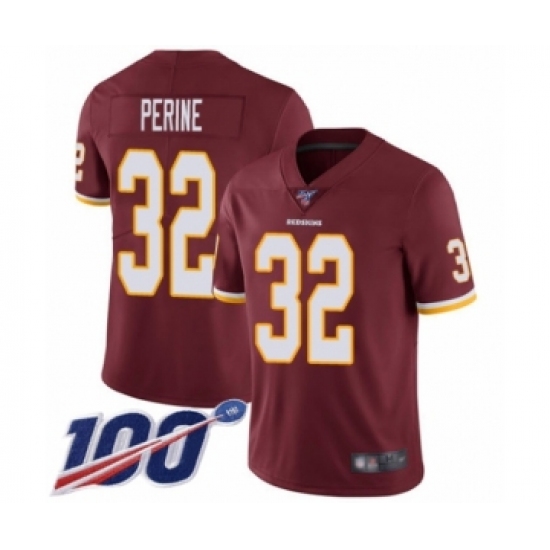 >Youth Washington Redskins #32 Samaje Perine Burgundy Red Team Color Vapor Untouchable Limited Player 100th Season Football Jersey