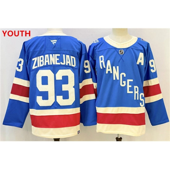 Youth new york rangers #93 mika zibanejad blue with a stitched hockey jersey