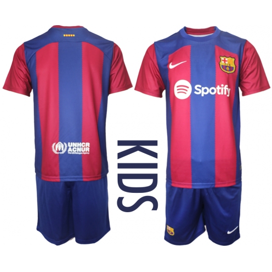 >kids Barcelona Blank Blue Red 2023-24 Home Soccer Jersey
