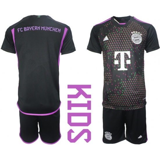 kids Bayern Munich Blank 2023-24 Black Away Soccer Jersey