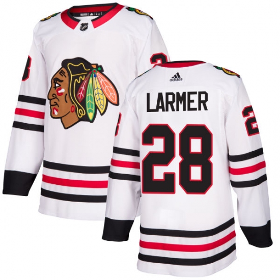 Men's Adidas Chicago Blackhawks #28 Steve Larmer Authentic White Away NHL Jersey