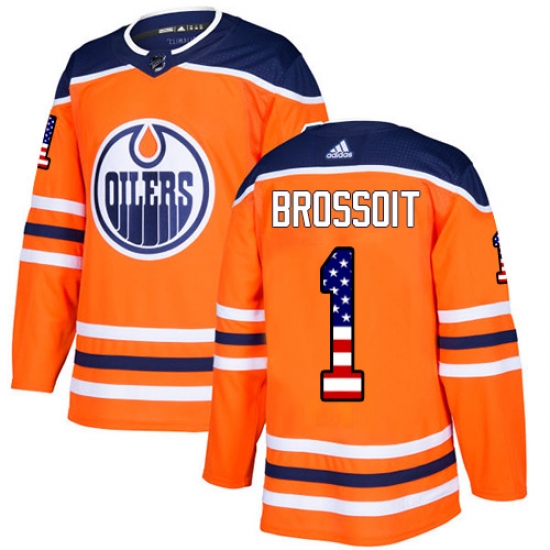 Home>NHL>Edmonton Oilers>Laurent Brossoit>Men's Adidas Edmonton Oilers #1 Laurent Brossoit Authentic Orange USA Flag Fashion NHL Jersey