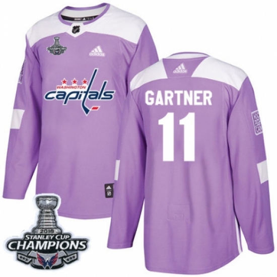 Men's Adidas Washington Capitals #11 Mike Gartner Authentic Purple Fights Cancer Practice 2018 Stanley Cup Final Champions NHL Jersey