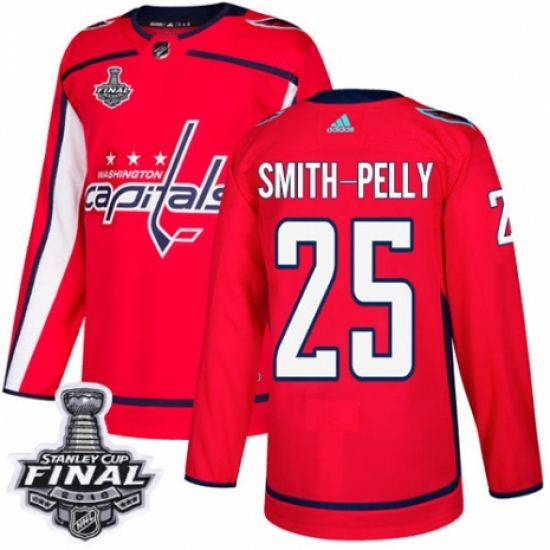 Men's Adidas Washington Capitals #25 Devante Smith-Pelly Premier Red Home 2018 Stanley Cup Final NHL Jersey