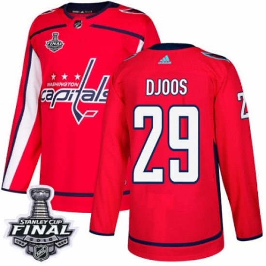 Men's Adidas Washington Capitals #29 Christian Djoos Premier Red Home 2018 Stanley Cup Final NHL Jersey