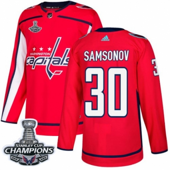 Men's Adidas Washington Capitals #30 Ilya Samsonov Authentic Red Home 2018 Stanley Cup Final Champions NHL Jersey