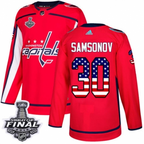 Men's Adidas Washington Capitals #30 Ilya Samsonov Authentic Red USA Flag Fashion 2018 Stanley Cup Final NHL Jersey