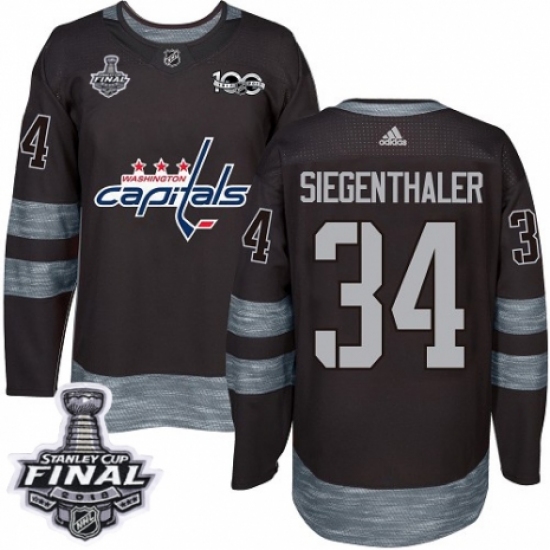 >Men's Adidas Washington Capitals #34 Jonas Siegenthaler Authentic Black 1917-2017 100th Anniversary 2018 Stanley Cup Final NHL Jersey