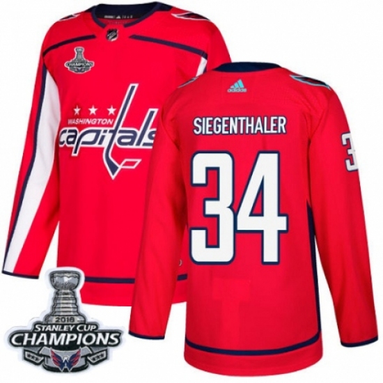 Men's Adidas Washington Capitals #34 Jonas Siegenthaler Premier Red Home 2018 Stanley Cup Final Champions NHL Jersey