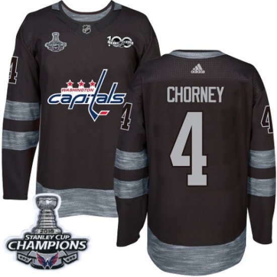 Men's Adidas Washington Capitals #4 Taylor Chorney Authentic Black 1917-2017 100th Anniversary 2018 Stanley Cup Final Champions NHL Jersey