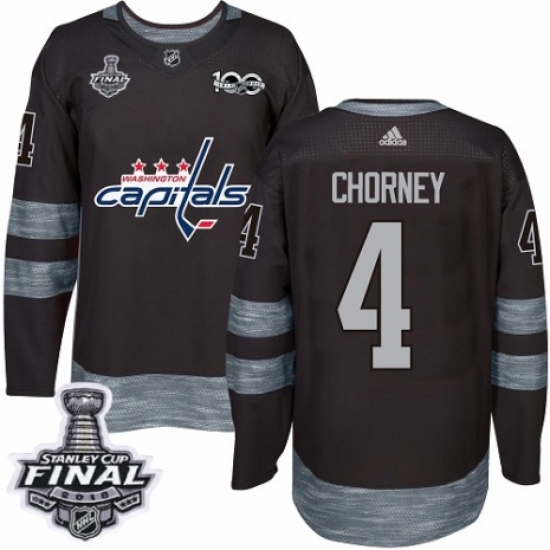 Men's Adidas Washington Capitals #4 Taylor Chorney Authentic Black 1917-2017 100th Anniversary 2018 Stanley Cup Final NHL Jersey