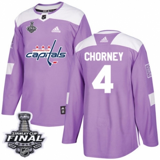 >Men's Adidas Washington Capitals #4 Taylor Chorney Authentic Purple Fights Cancer Practice 2018 Stanley Cup Final NHL Jersey