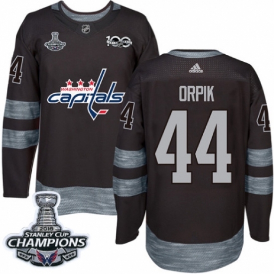Men's Adidas Washington Capitals #44 Brooks Orpik Authentic Black 1917-2017 100th Anniversary 2018 Stanley Cup Final Champions NHL Jersey
