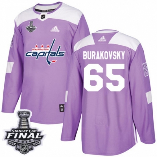 >Men's Adidas Washington Capitals #65 Andre Burakovsky Authentic Purple Fights Cancer Practice 2018 Stanley Cup Final NHL Jersey