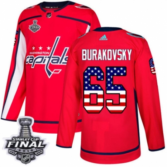 Men's Adidas Washington Capitals #65 Andre Burakovsky Authentic Red USA Flag Fashion 2018 Stanley Cup Final NHL Jersey