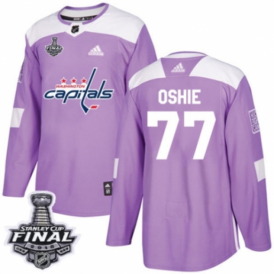 >Men's Adidas Washington Capitals #77 T.J. Oshie Authentic Purple Fights Cancer Practice 2018 Stanley Cup Final NHL Jersey