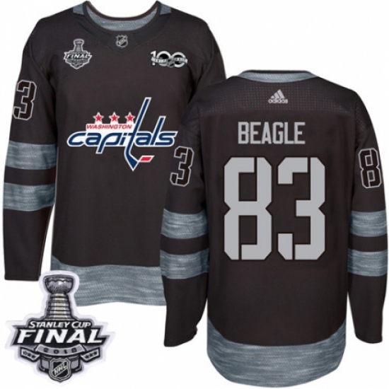 >Men's Adidas Washington Capitals #83 Jay Beagle Authentic Black 1917-2017 100th Anniversary 2018 Stanley Cup Final NHL Jersey