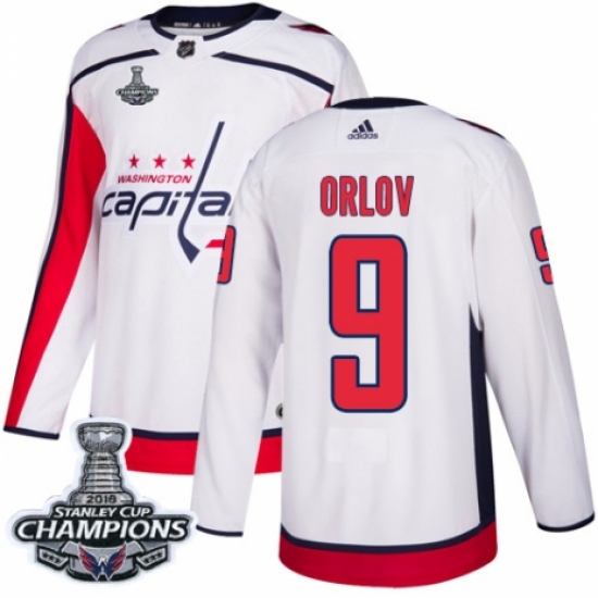 Men's Adidas Washington Capitals #9 Dmitry Orlov Authentic White Away 2018 Stanley Cup Final Champions NHL Jersey