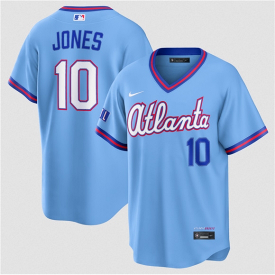 >Men's Atlanta Braves #10 Chipper Jones Powder Blue 2026 City Connect Stadium Stitched Baseball Jersey