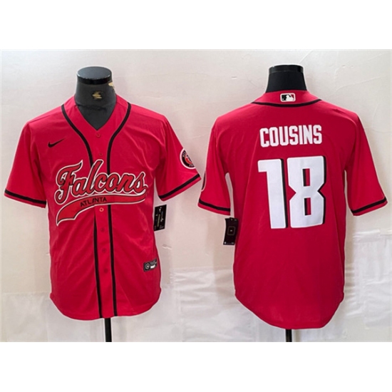 >Men's Atlanta Falcons #18 Kirk Cousins Red With Cool Base Baseball Stitched Jersey