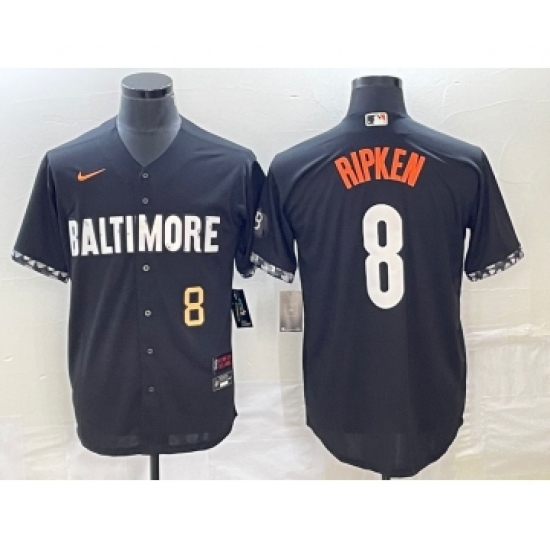 Men's Baltimore Orioles #8 Cal Ripken Jr Black 2023 City Connect Cool Base Stitched Jersey 1