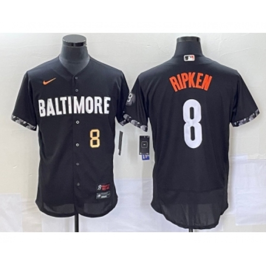 >Men's Baltimore Orioles #8 Cal Ripken Jr Number Black 2023 City Connect Flex Base Stitched Jersey 2