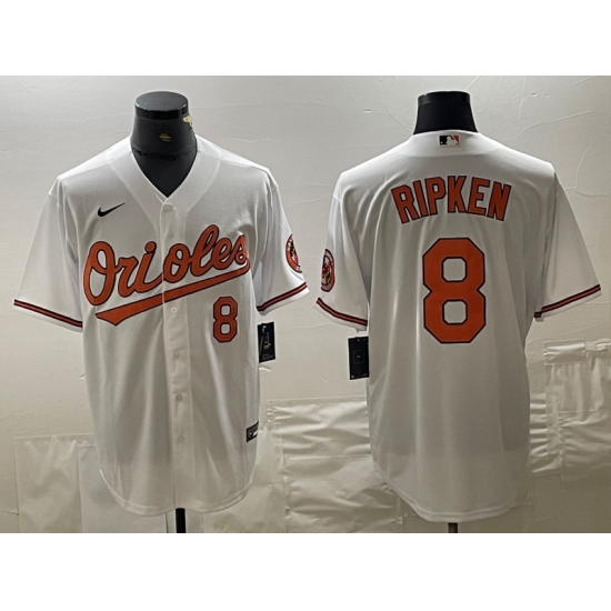 Men's Baltimore Orioles #8 Cal Ripken Jr Number White Cool Base Stitched Jersey