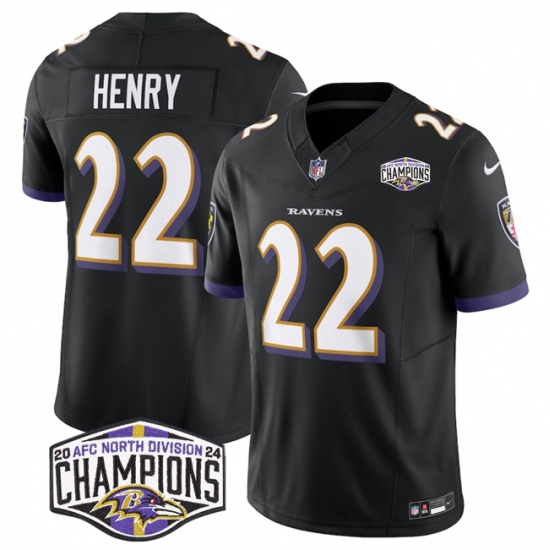 Men's Baltimore Ravens #22 Derrick Henry Black F.U.S.E 2024 AFC North Division Champions Vapor Limited Football Jersey