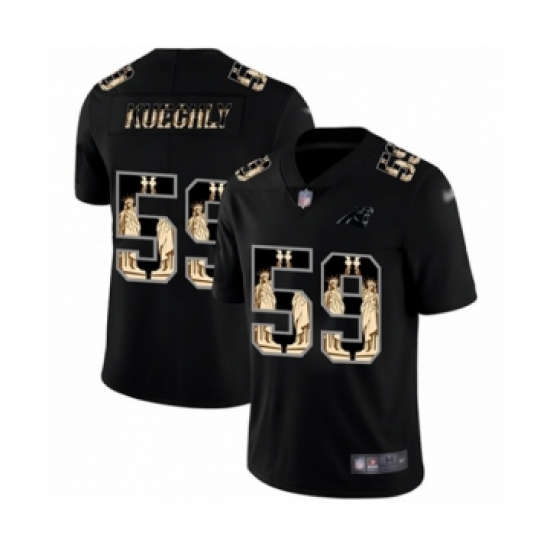 >Men's Carolina Panthers #59 Luke Kuechly Limited Black Statue of Liberty Football Jersey
