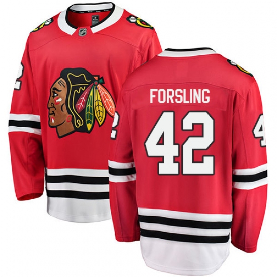 Home>NHL>Chicago Blackhawks>Gustav Forsling>Men's Chicago Blackhawks #42 Gustav Forsling Fanatics Branded Red Home Breakaway NHL Jersey