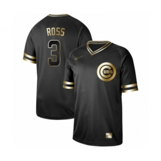 Men's Chicago Cubs #3 David Ross Authentic Black Gold Fashion Baseball Jersey