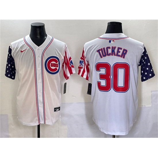 Men's Chicago Cubs #30 Kyle Tucker White 2025 Independence Day Vapor Premier Limited Stitched Baseball Jersey