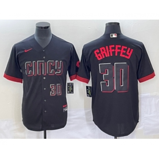Men's Cincinnati Reds #30 Ken Griffey Jr Number Black 2023 City Connect Cool Base Stitched Jersey2