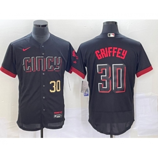 Men's Cincinnati Reds #30 Ken Griffey Jr Number Black 2023 City Connect Flex Base Stitched Jersey